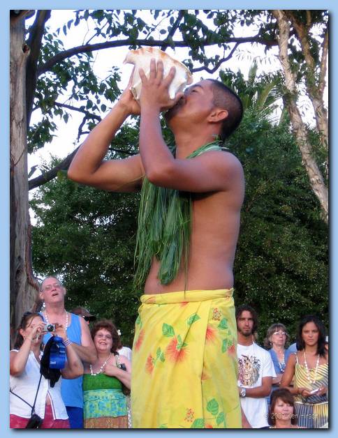 Blowing of the conch shell to begin the Lu'au