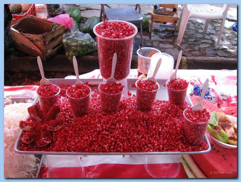 Pomegranate seeds at the Ajijic tianguis