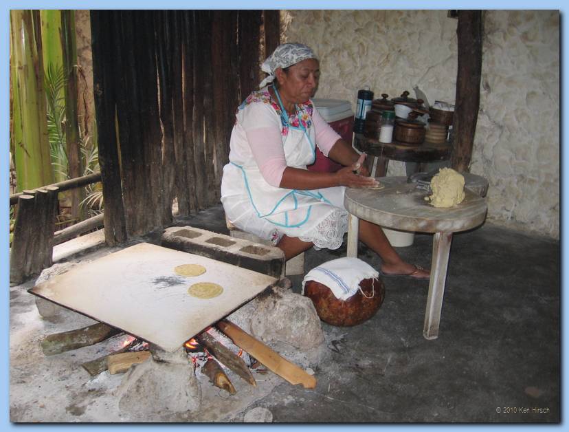 Woman making tortillas at Kinich restaurant, Izamal