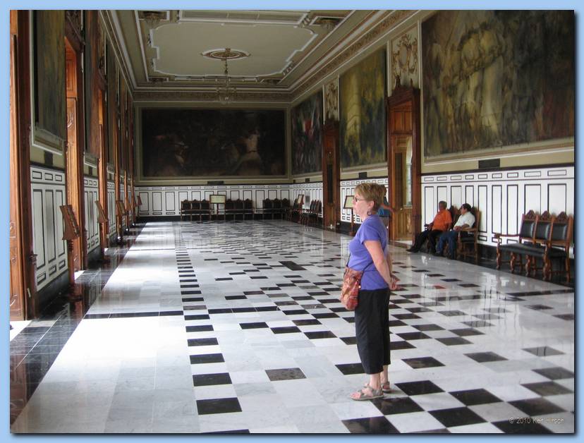 Jamey looking at murals inside Governor's Palace