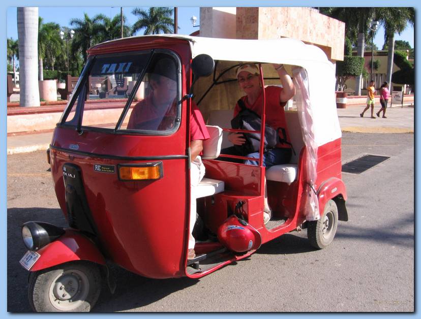 Jamey aboard "tricitaxi" in Ticul