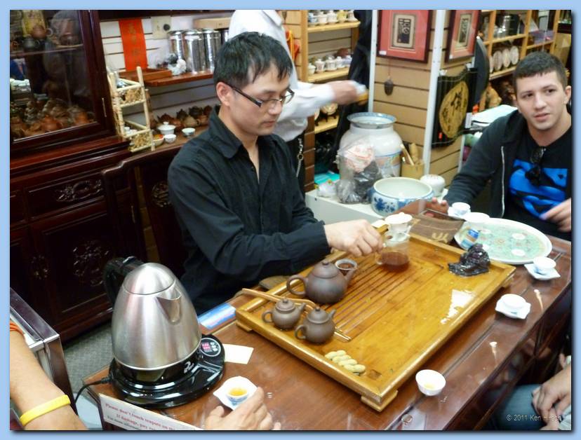 Merchant demonstrating the art of preparing Chinese tea