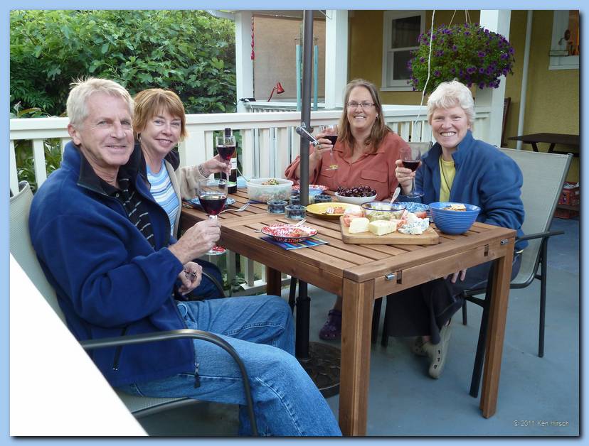 Enjoying happy hour with our hosts, Leslie & Susan
